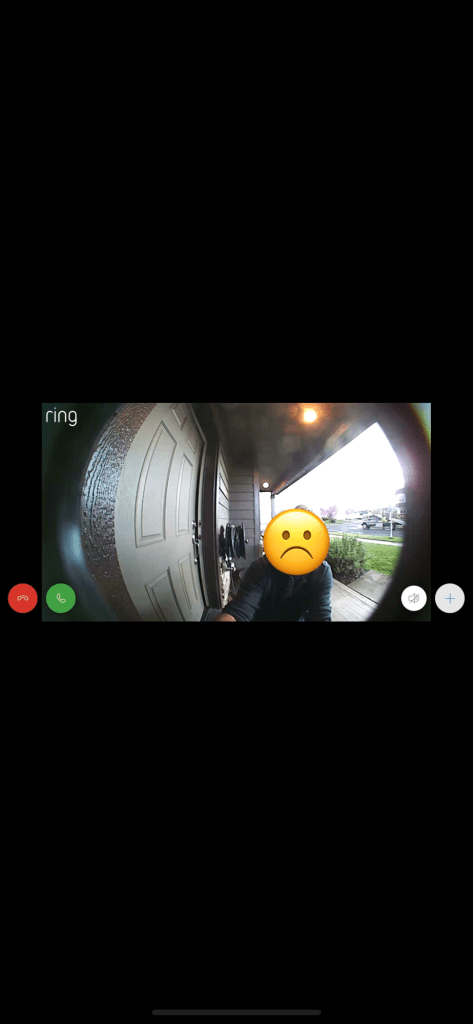 Editing to add: Cause I forgot this detail until now. Over Spring Break, March 2021, my older daughter, younger daughter and youngest son took a road trip to Yosemite National Park. It had dawned on me that for the first time in almost 20 years I was free to travel and none of us had ever been to Yosemite. We kept our plans quiet until the absolute last minute. Ex was as indignant as ever when he found out we were leaving. He told me I wasn’t leaving until I turned over his guns. I told him I would consider giving him the guns if I came back to an intact house. I knew he would struggle to get the safe out of the house intact. We had to remove the door when it was originally moved into the house and up the stairs because of its size. Now it was fully loaded and he didn’t have the combination. He was following me around demanding his guns right up to driving away. We drove all day to get to Yosemite. We had found and reserved online a really cute motel just outside the park. It was cuter in person and because of the Covid slowdown very reasonably priced. That first night we were playing card games and my Ring app kept repeatedly going off. It was Ex. He was kneeling down on the front porch prying the Ring camera off the house. I asked him through the Ring what he was doing? He said he was taking the Ring with him. We argued over the stupid Ring for about 10 minutes, until I reminded him I would only consider releasing his guns if I came back to an intact house. This is a screen shot of him prying on the camera that day. I really don’t know if he was actually trying to take the Ring or if he was just attempting to ruin our trip. Or maybe both. He knew I would be able to see what he was doing. His attempt at ruining our trip was laughable and sad.